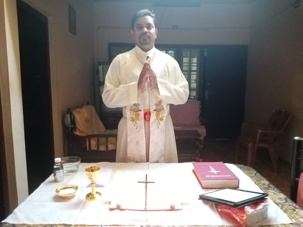 隔離された場所で、聖なる器に感謝してミサを捧げます